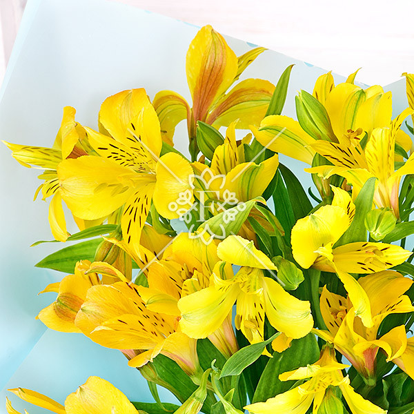 Альстромерия желтая -5 шт., упаковка, лента.